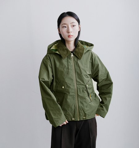 実用性とBarbourらしいスタイルを兼ね備えた、シャワープルーフジャケット。コーデュロイ襟と取り外し可能なフードを備え、軽い雨の日にも対応できる汎用性の高いデザインです。