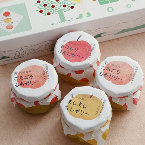 こちらは、福島県の果樹専門農園「大野農園」で大切に育てられたフルーツをたっぷり使った、ゼリーの詰め合わせ。