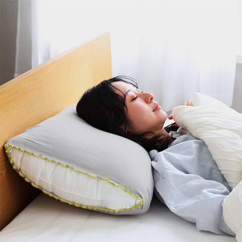国内で丁寧につくられた継ぎ目のない枕カバーは、肌に触れてもチクチクせず、ふんわりやさしいはだあたり。