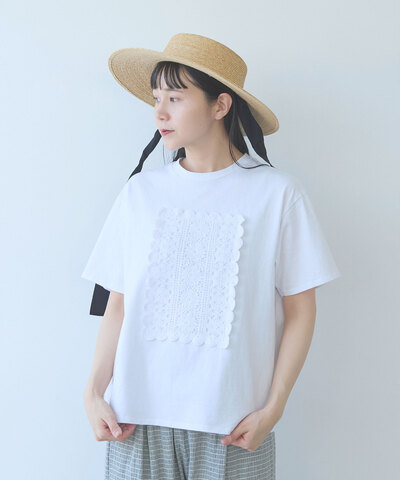 prit|17/1空紡天竺×10/1ムラ糸プリント 5分袖フレームTシャツ 半袖 カットソー レディース 5分袖 ドット ボーダー p92528/p91638