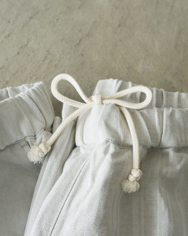 ゆとりのあるワイドなシルエットに、ウエストゴム+ドローコードのイージー仕様。力の抜けた穿き心地でありながら、縦に流れるストライプがさりげないアクセントになって、着こなしに遊び心をプラスします。
