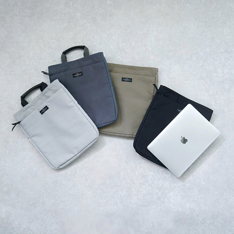 通勤スタイルに合う、カジュアル過ぎないすっきりしたデザインの「スリークPCバッグ」。13インチのノートPCやタブレットが収まる、クッション性のあるスリーブケースです。ポケットが充実しているので、マウスや充電コードなどのPC周辺小物や書類なども一緒に持ち歩けます。