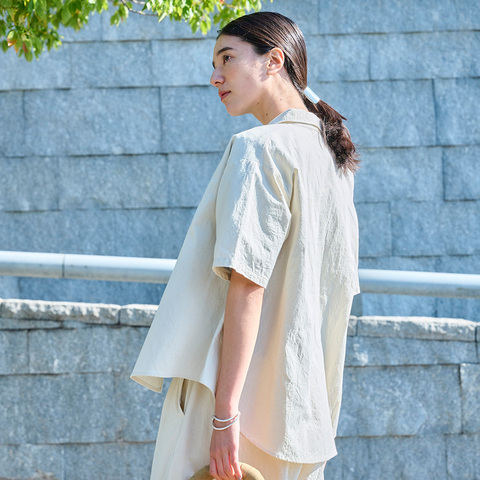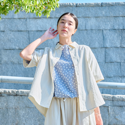 羽織りにもブラウスにも使える、軽やかなバランスのシャツです。