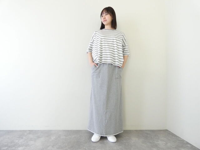 Tシャツやボーダーと合わせたラフな着こなしはもちろん、シャツやカットソーとも好相性。気軽に手に取りたくなる、日々にちょうどいいスカートです。