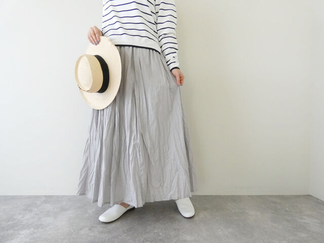 たっぷりと寄せたギャザーが自然なボリュームを生み、トップスを選ばずバランスよくまとまります。