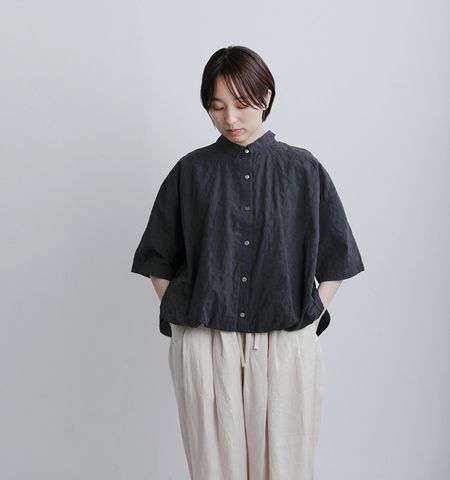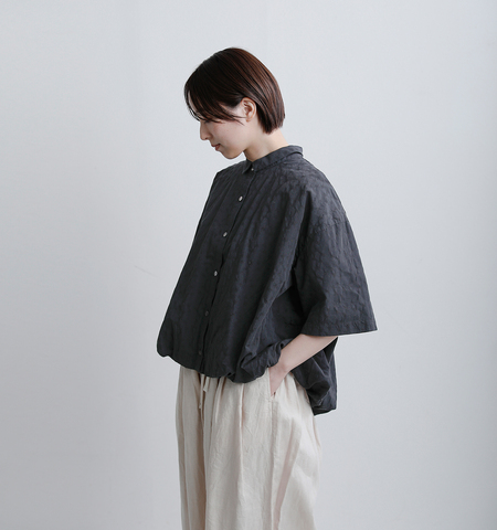 綿100%のドットジャガード生地を使用した、裾がバルーンシルエットになったブラウスです。さりげないドット柄なので、年齢を問わず着用しやすく、日常に華を添えてくれます。