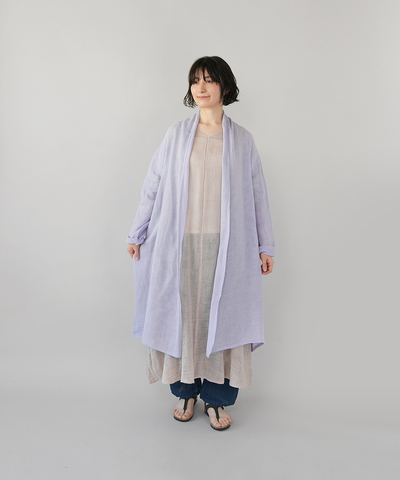 ショールカラーのやわらかなドレープが美しい 蚊帳生地カラーカーディガン