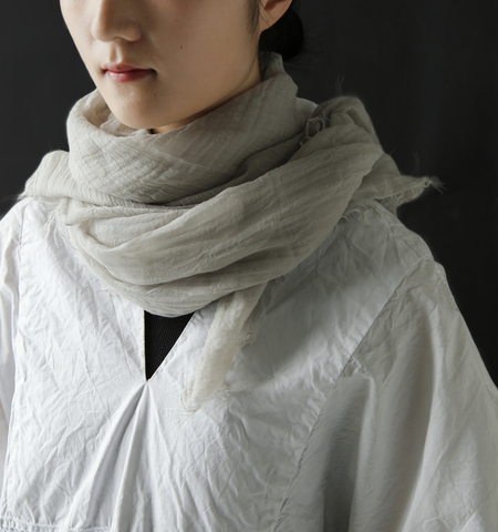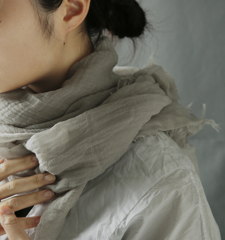 大きく広げれば羽織るように、くるりと巻けば、首元に静かな表情を添えてくれて、一枚で表情が変えられます。