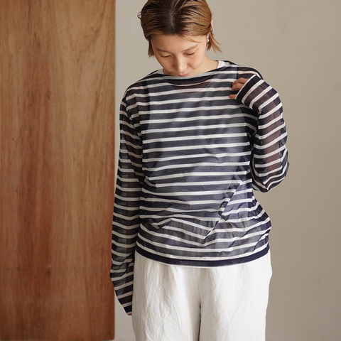 フレンチシックなムード漂うシアー素材の長袖カットソーです。