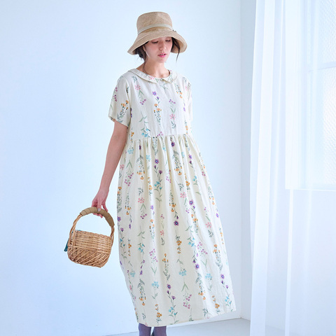 やわらかな風をまとって、心まで軽くなる、リネンコットン彩りワンピースです。彩り豊かな草花が、日常にそっと華やぎを添えてくれます。