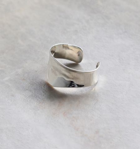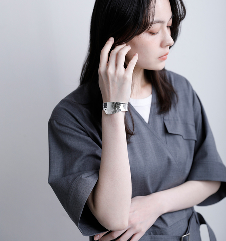 柔らかな曲線が曖昧さの中にある美を映し出し、静かに揺らぐ海のように形に捉われない自由さを表現するワイドバングル。