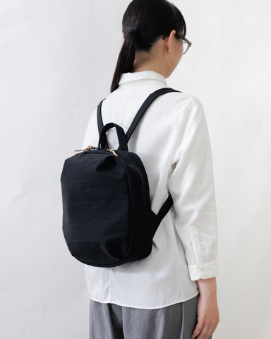 ふつうのナイロンの黒リュックとはひと味違います。 モノトーンコーデもカッコよくきまります。