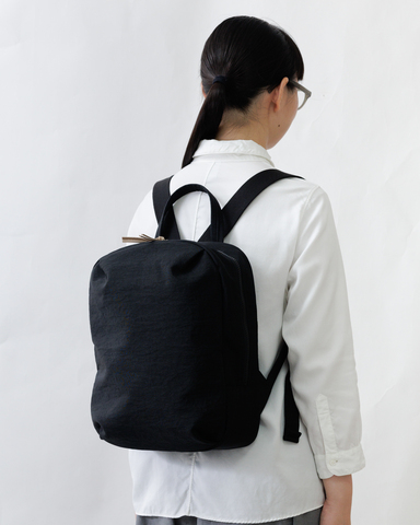ふつうのナイロンの黒リュックとはひと味違います。 モノトーンコーデもカッコよくきまります。