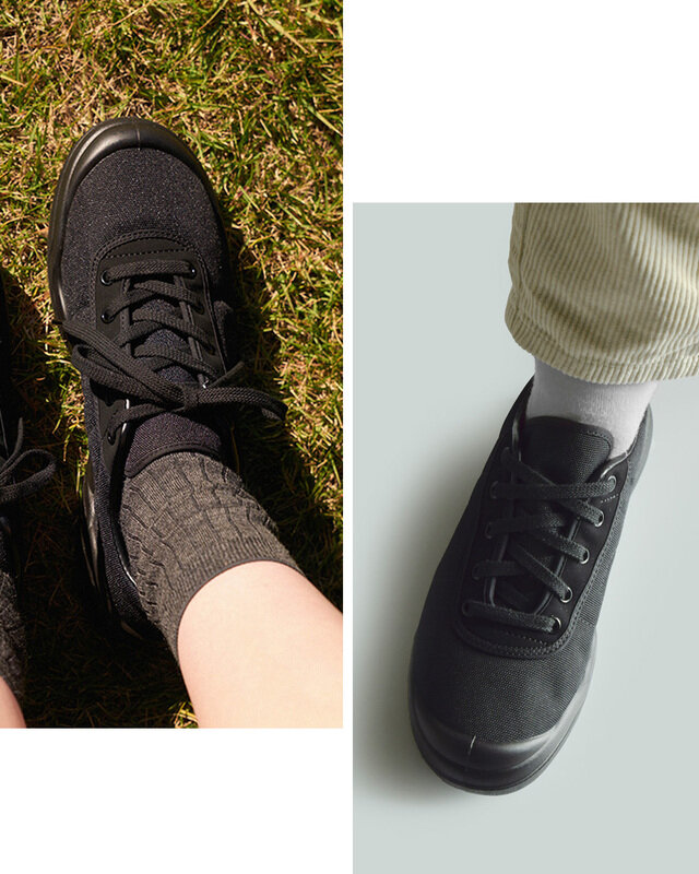 ■キャンバス×ラバーソールのコントラストで引き締めます