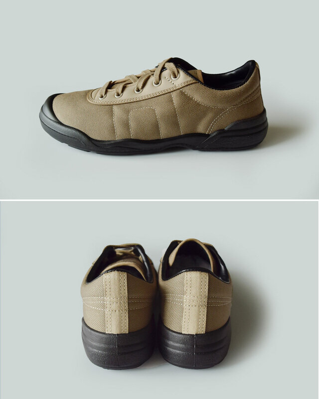ムーンスターがこれまで生み出してきた学生靴のアーカイブをベースに今のライフスタイルに合わせて再構築したシリーズです。こちらは、バイオLTタイプの運動履きから発展させたレースアップタイプ。ミリタリートレーナーのような雰囲気に。