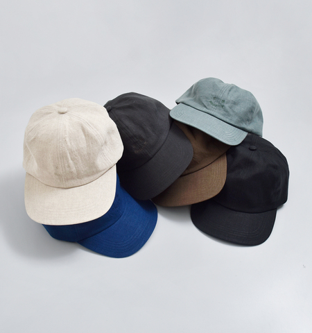 本体には通気性に優れた麻素材を使用し、ナチュラルで清涼感のある風合いが魅力です。さらに染色後にひと手間加えることで、リネン特有のハリ感を程よく抑え、柔らかくふっくらとした肌触りに仕上げています。裏地には綿を使用しており、肌当たりも優しく、快適な被り心地を実現しています。