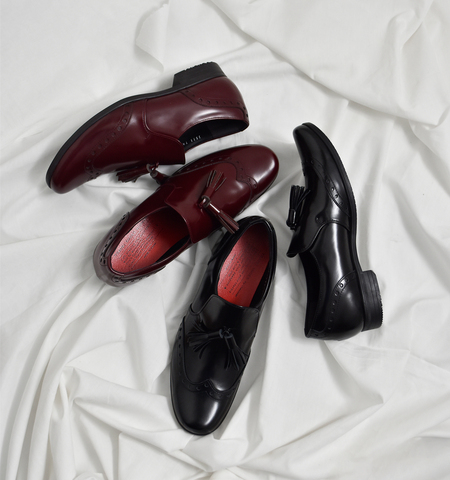 TRAVEL SHOES by chausser(トラベルシューズバイショセ)より、ガラスレザー メダリオン タッセル シューズのご紹介です。