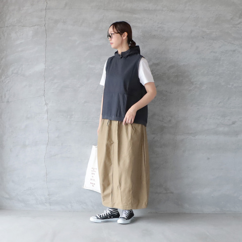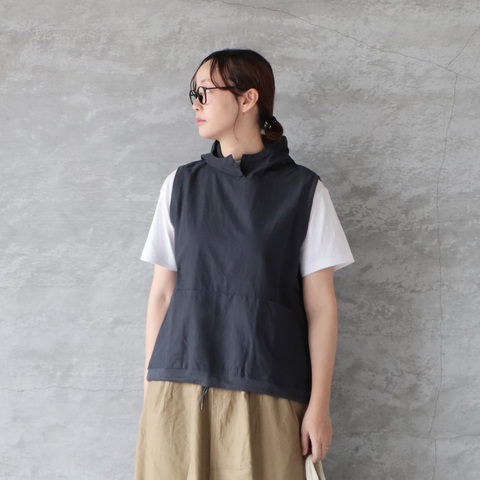 ラフさと女性らしさをバランスよく取り入れたフーディタイプのベスト
