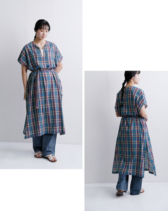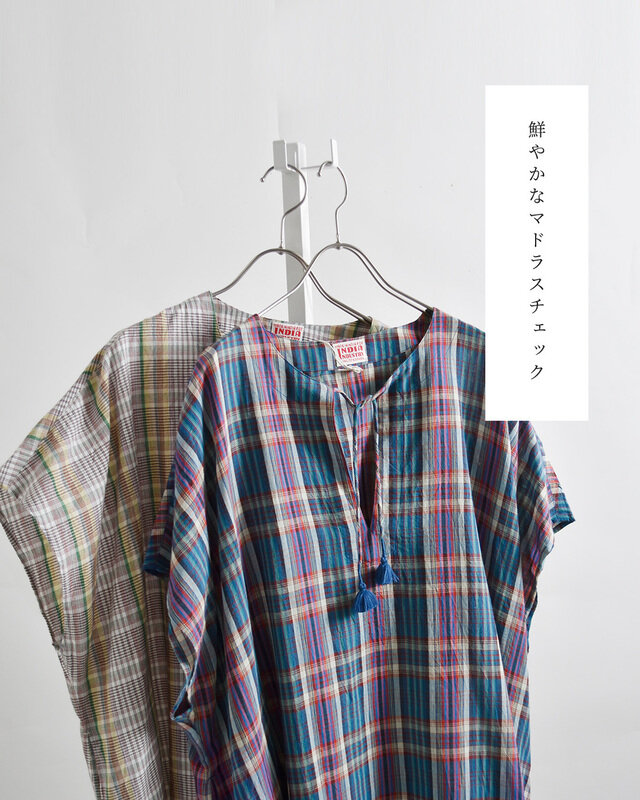 INDIAINDUSTRY(インディアインダストリー)より、コットンマドラスチェックカフタンワンピースをご紹介します。