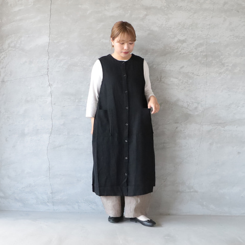 コットンとリネンをブレンドした、ナチュラルで軽やかな風合いが魅力のロングジレ。