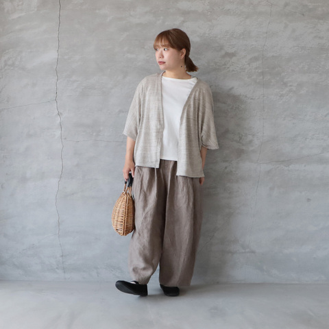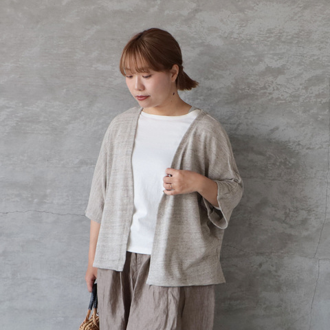 杢調のナチュラルな表情が魅力の天竺カットソーを使用した、軽やかに羽織れるカーディガン感覚の一枚。