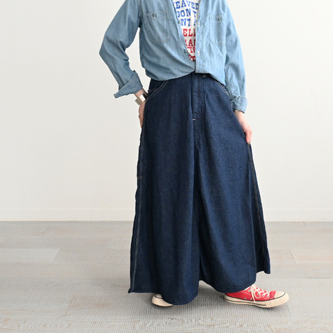 orSlow|DENIM PAINTER LONG SKIRT - ONE WASH