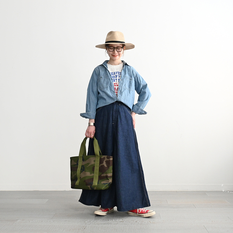 NARU|(ナル) 8ozムラデニム ノッポスカート 663810 ゆったり フレア Aライン マキシ ロング
