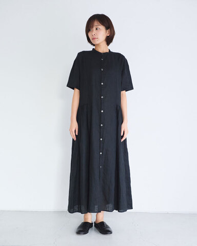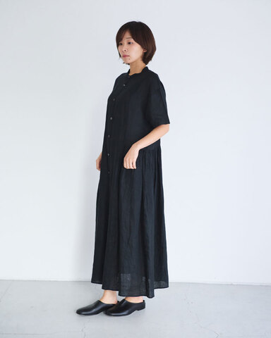 クロは、上質で肌触りの良いフレンチリネンを使用。肌馴染みがよく、清涼感と程よいハリ感で日常にも取り入れやすい一着です。