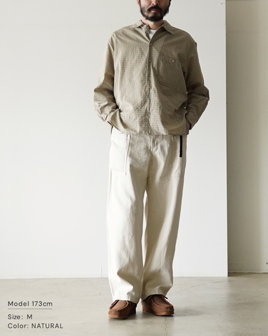 ゆとりを持たせたストレートシルエットは、過度に太すぎないバランス設計。アウトドア由来の要素を活かしながら、街でも自然に馴染む佇まいに仕上げています。