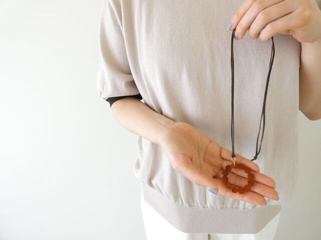 ひもタイプで軽やかにつけられ、長さは調整可能。