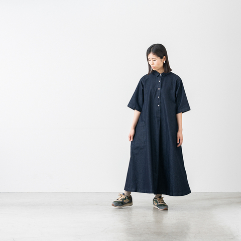 襟付きのデザインに、光沢のある貝調ボタンがアクセント。