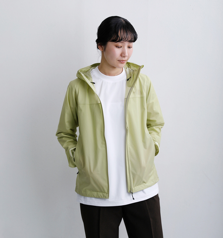 驚くほど軽くてしなやかな着心地は、レインウェア特有のごわつきが苦手な方にこそ試していただきたい一枚。白Tシャツやブラウンのボトムスと合わせるだけで、都会的なアウトドアミックススタイルが完成します。