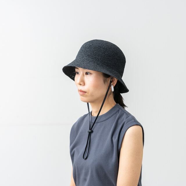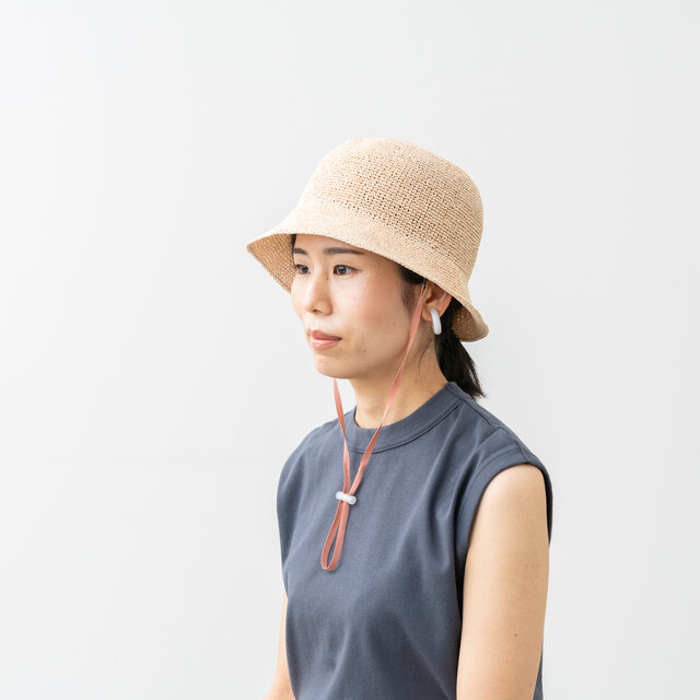 本体カラーに合わせたハットストラップ(あご紐)付き。