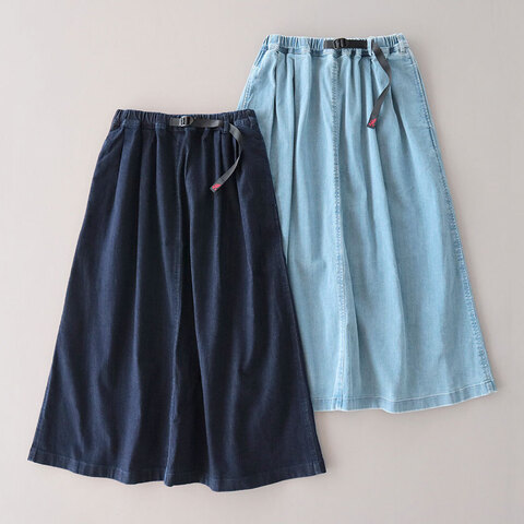 街にもアウトドアにも馴染む「Gramicci (グラミチ)」のデニムスカートのご紹介です。