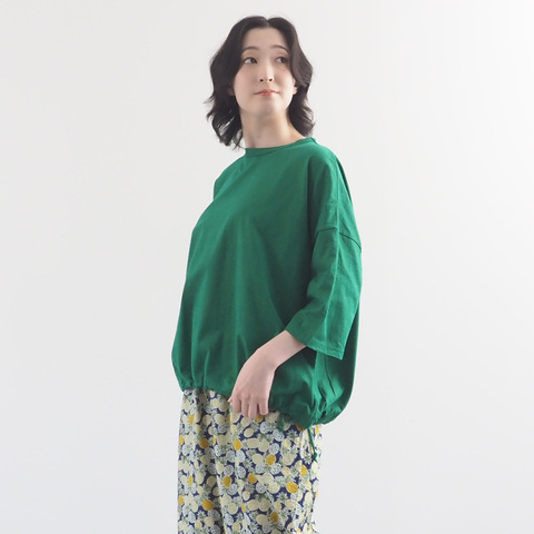 さりげなく印象が変わる、裾のコードデザインが特徴のクラシック天竺 コードアレンジPOです。裾にあしらわれたコードをきゅっと絞ることで、シルエットにほんのり丸みが生まれます。そのままストンと着ても、少しアレンジしても楽しめる、1枚で表情の変わるデザインです。