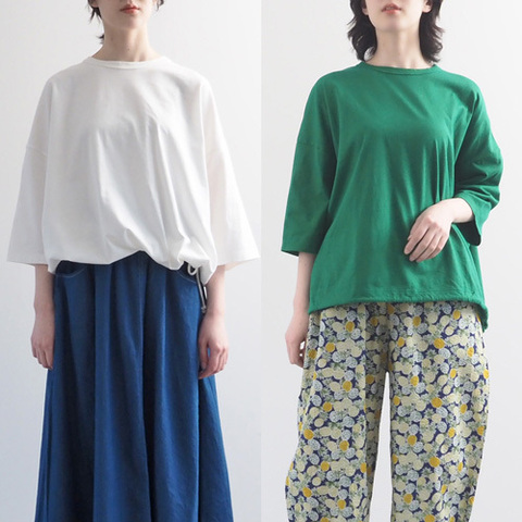 程よい厚みとコシがあり、優しく肌になじむ上品なカットソー生地です。きゅっと細かな編み目で毛羽立ちが少なく、お洗濯を繰り返してもさらりとした着心地が続きます。