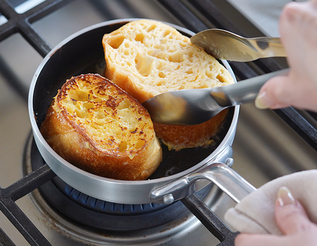 中深型のハムエッグパンは深さもあるので、アヒージョなどスキレットのような使い方もできます。