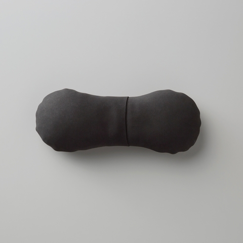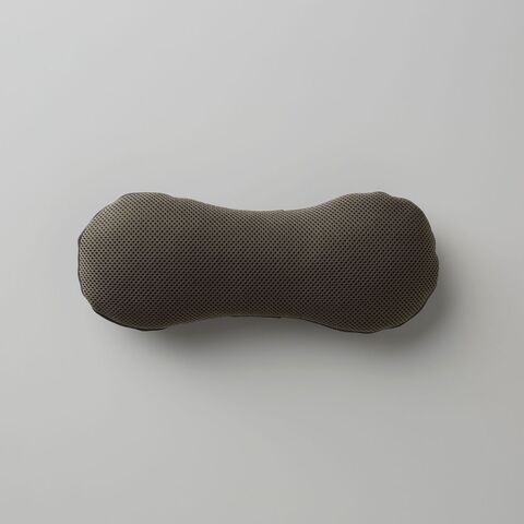 形にも、使いやすい工夫があります。真ん中が少しくぼんだフォルムになっていて、首や腰、額にしっかりとフィット。枕を当てた部分がうまく収まらない、というストレスがありません。デスクワークや移動中、座席の背面と首の間に挟んだり、くぼみに頭を当ててデスクで仮眠を取ったりと、さまざまな使い方ができます。アームレスト代わりにパソコンの前に置く、なんてことも可能です。