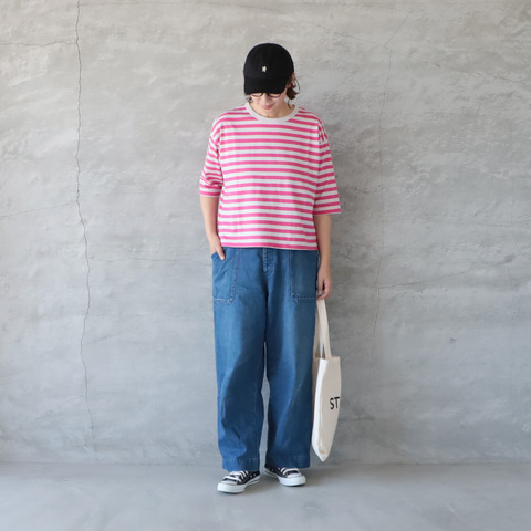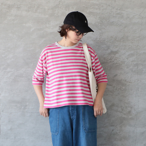 鮮やかな配色が目を惹く、存在感たっぷりのボーダーTシャツ。