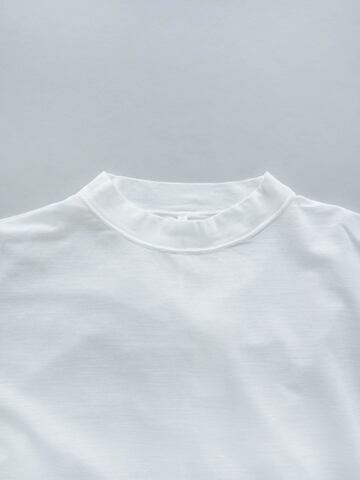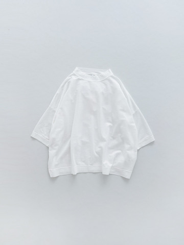 ワイドな身幅で着やすいサイジング。身体のラインを拾いにくいボックスシルエットです。少し立ち上がったような襟元が、大人っぽい雰囲気に。