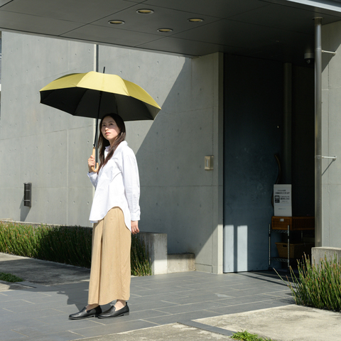撥水性は最高等級の5級。水滴がころんと転がるように流れ落ち、生地に残りにくいのが特長です。さらに、耐水圧20,000mm以上と高い防水性で、激しい雨の日でもしっかりガード。雨が染み込みにくく、内側まで濡れにくい安心感があります。風に強いグラスファイバー骨を使用し、天候の変化にも頼れるつくりです。