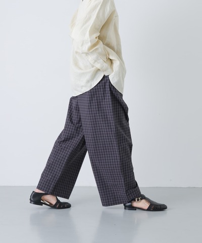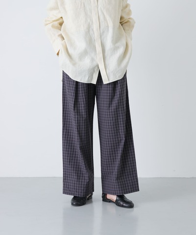 フロントのタックが立体感を生み、ワイドながらもスッキリとした印象のイージーパンツ。