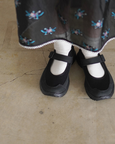 クラシックなメリージェーンのフォルムをベースに、現代的な機能性を融合させた一足。無駄を削ぎ落としたミニマルなデザインは、カジュアルからきれいめまで幅広いスタイリングに自然と馴染みます。
