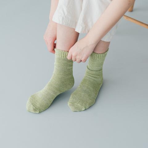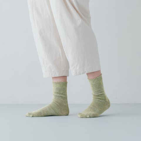 厚手すぎず、薄すぎない。暖かさと軽やかさのバランスが心地いい、ウールリネンソックス。 毎日の足元に、自然素材ならではのやさしい温度感を取り入れてみてください。