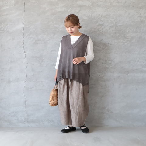 カットソーやシャツ、ワンピースに重ねるだけでコーディネートに奥行きを生む、着回し力の高いアイテムです。