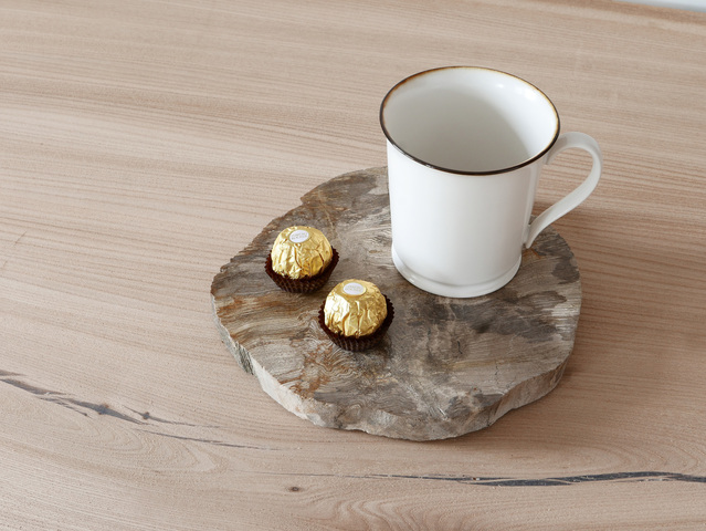 木の化石とも呼ばれる珪化木(けいかぼく)から作られたディスプレイプレート。