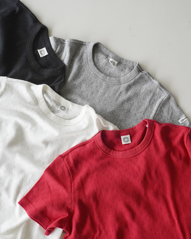 通気性の良いパターンメッシュが程よい甘さを演出する、クルーネックの半袖Tシャツ。オリジナルのパターンメッシュがさりげない表情を生み、シンプルながらもコーディネートに奥行きを添えてくれます。
