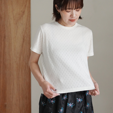 「 パターンメッシュ クルーネックTシャツ 」