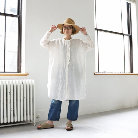 maison de soil|リネン・フリルカラーロングシャツ