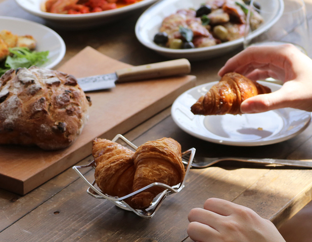 ぶどうやいちごなどの小ぶりな果物をやさしく受け止めるフルーツトレーに。平らなまま、焼き菓子やチョコレートを並べることも。
